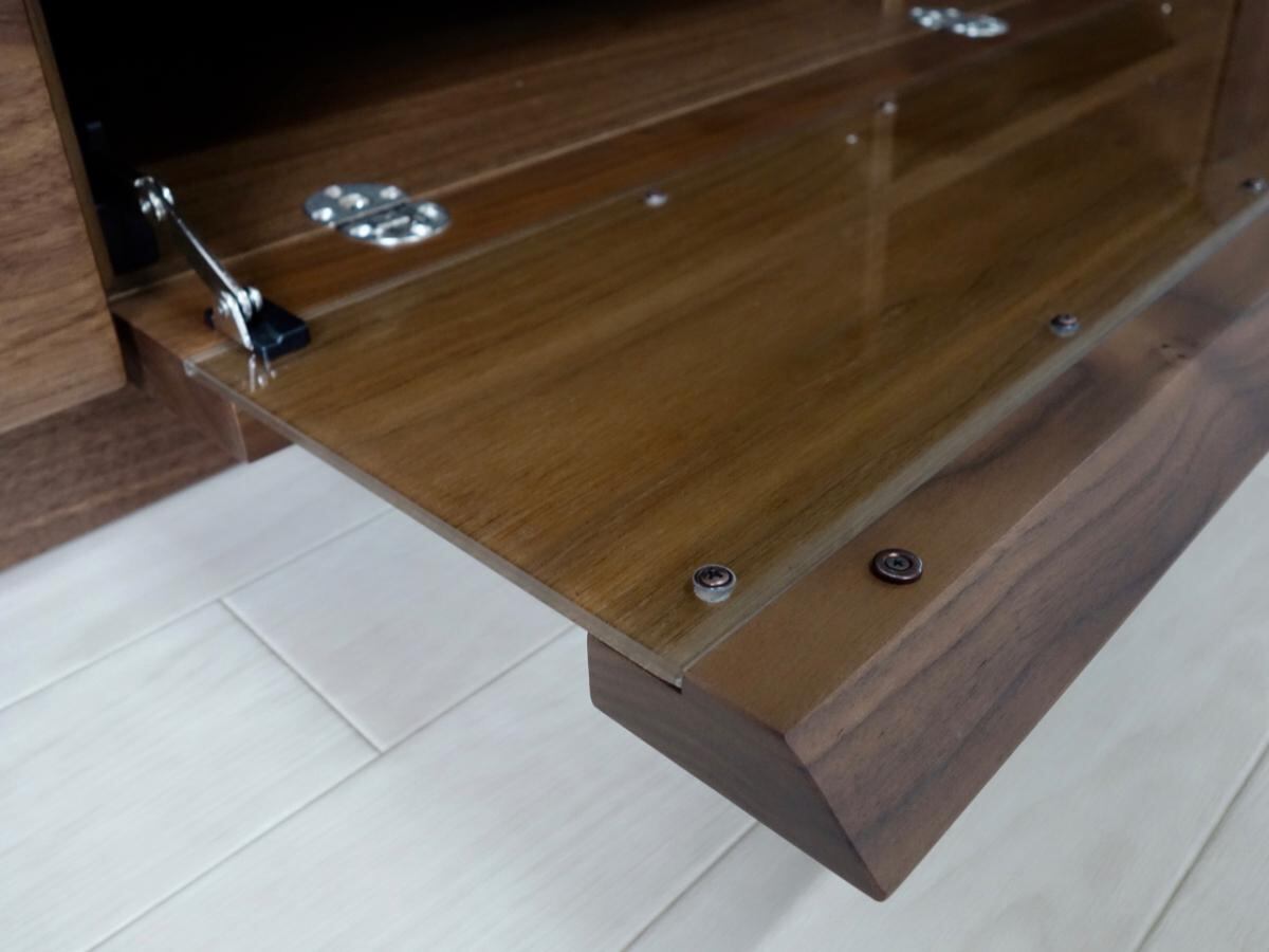 AV収納の扉は、ガラスに突板(0.2mmほどの薄い天然木)を貼り付けているので、
