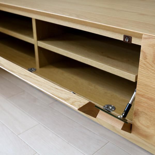 天板や前面に無垢材をふんだんに使用しつつ、無駄な要素を極限まで省いたミニマル・デザインなので、どんなお部屋にもマッチします。