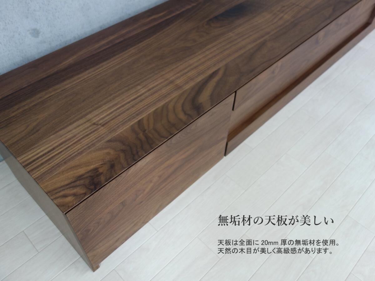 天板は全面に20mm厚の無垢材を使用しているため、木目が美しく高級感があります。