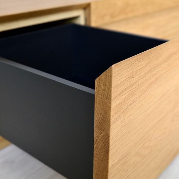 天板や前面に無垢材をふんだんに使用しつつ、無駄な要素を極限まで省いたミニマル・デザインなので、どんなお部屋にもマッチします。