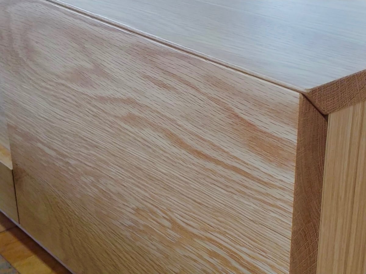 天板は全面に20mm厚の無垢材を使用しているため、木目が美しく高級感があります。