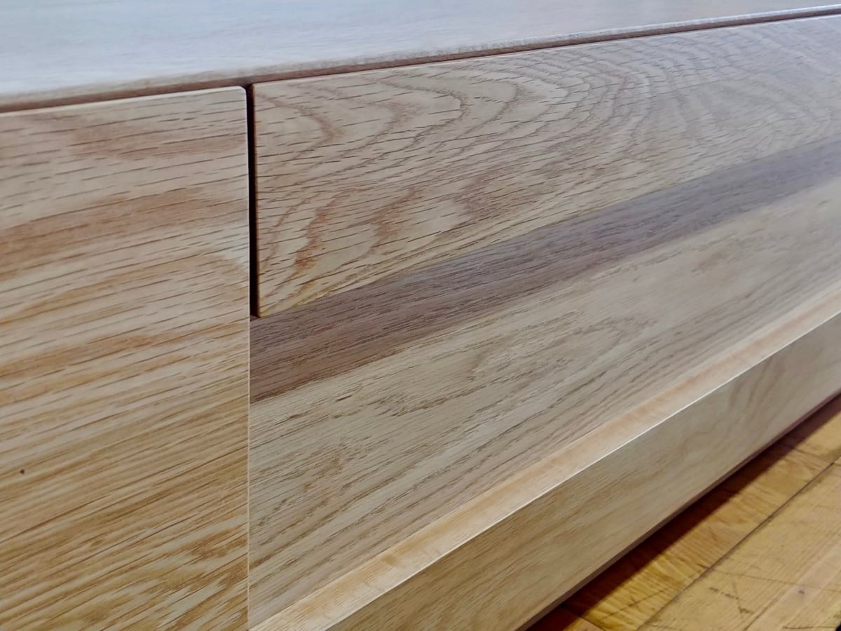 天板や前面に無垢材をふんだんに使用しつつ、無駄な要素を極限まで省いたミニマル・デザインなので、どんなお部屋にもマッチします。