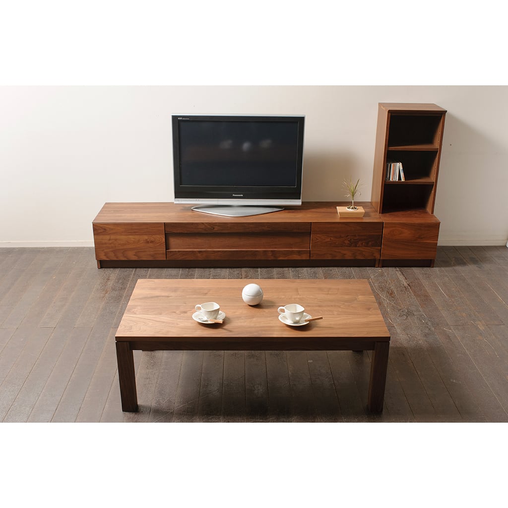 天板や前面に無垢材をふんだんに使用しつつ、無駄な要素を極限まで省いたミニマル・デザインなので、どんなお部屋にもマッチします。