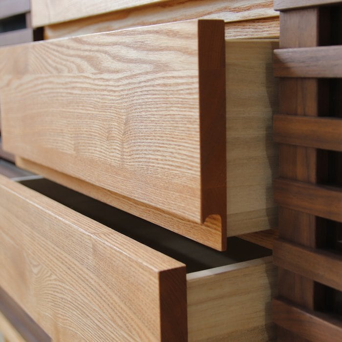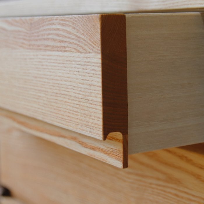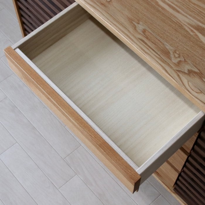 天板・側板・底板・脚・前板(引出し):タモ無垢材