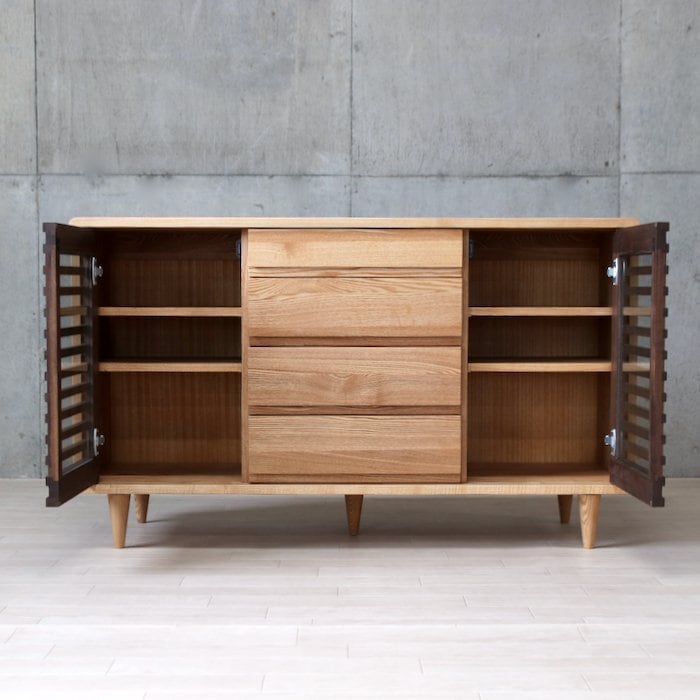 丁寧に作られた無垢材の商品は丈夫で長く愛用できるものです。是非、天然木の温かみを感じるこのキャビネットで、くつろぎの空間を演出してみませんか?