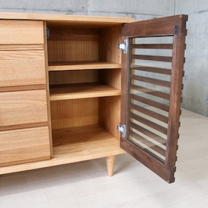 前板(扉):ウォールナット無垢材、ガラス