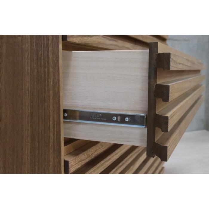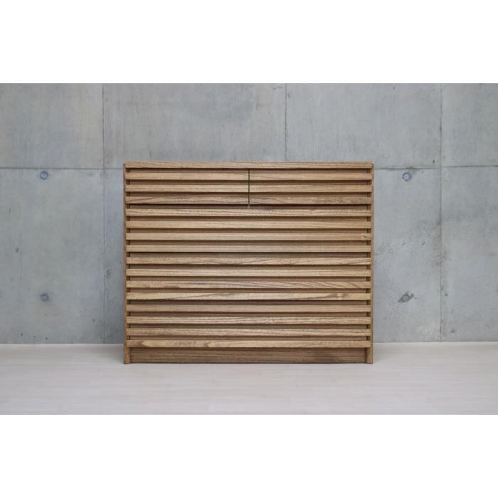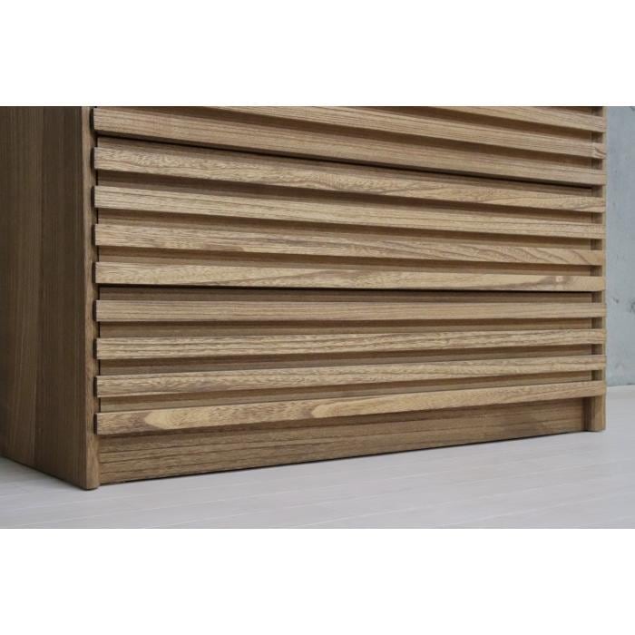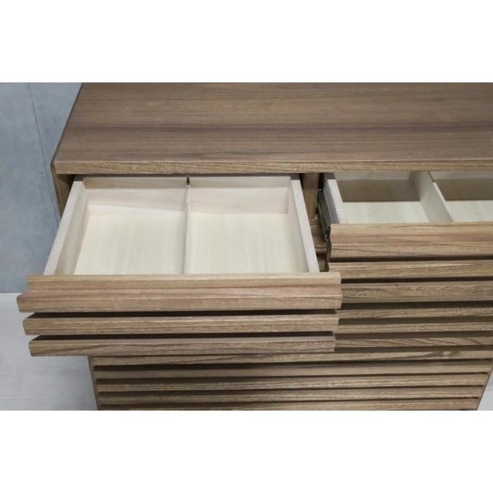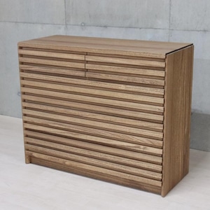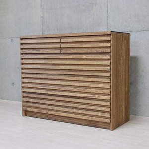 前板が格子のようなデザインがモダンな印象を与え、リビングチェストとしてもおしゃれにお使いいただけます。