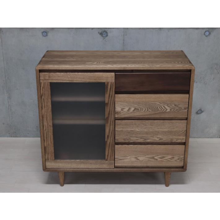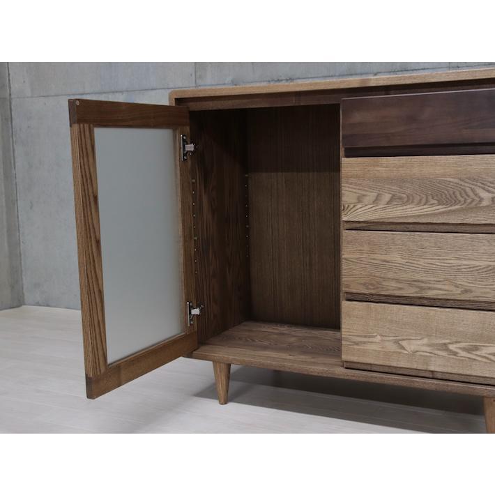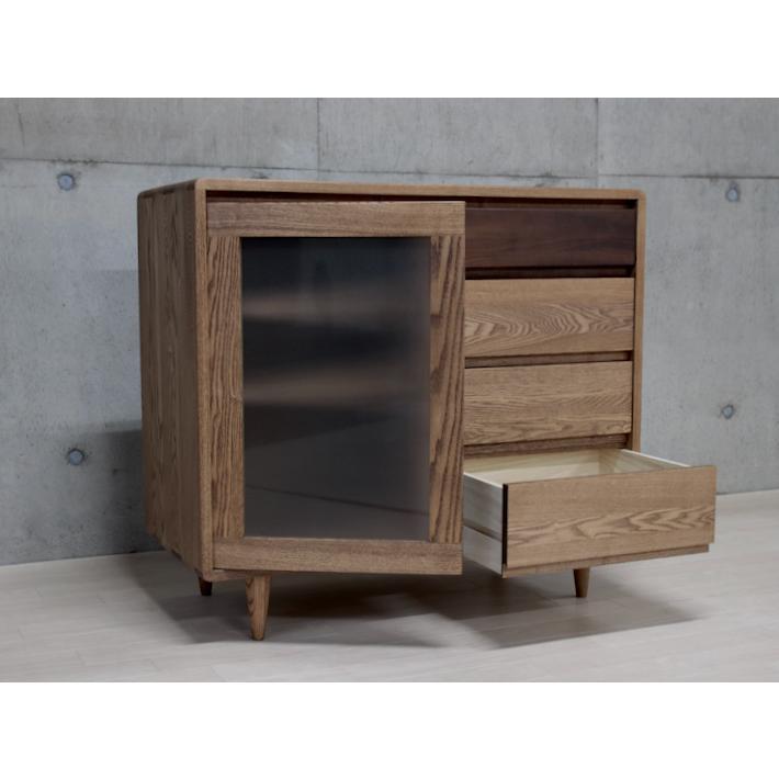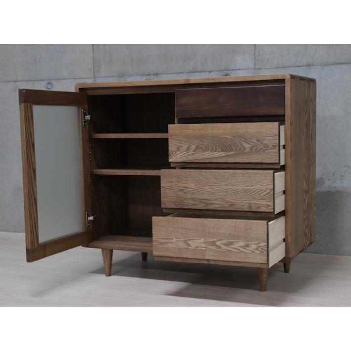 サイドボード 無垢 リビングボード 収納 キャビネット 木製 脚 おしゃれ 北欧 ウォールナット ガラス扉 完成品 脚付き 引出し 90 タモ 匠デザイン 高級