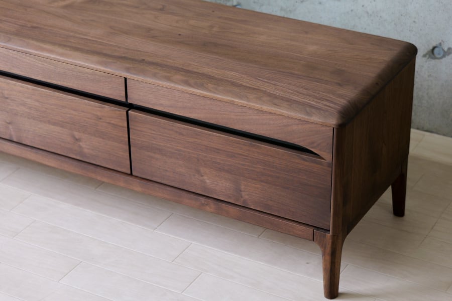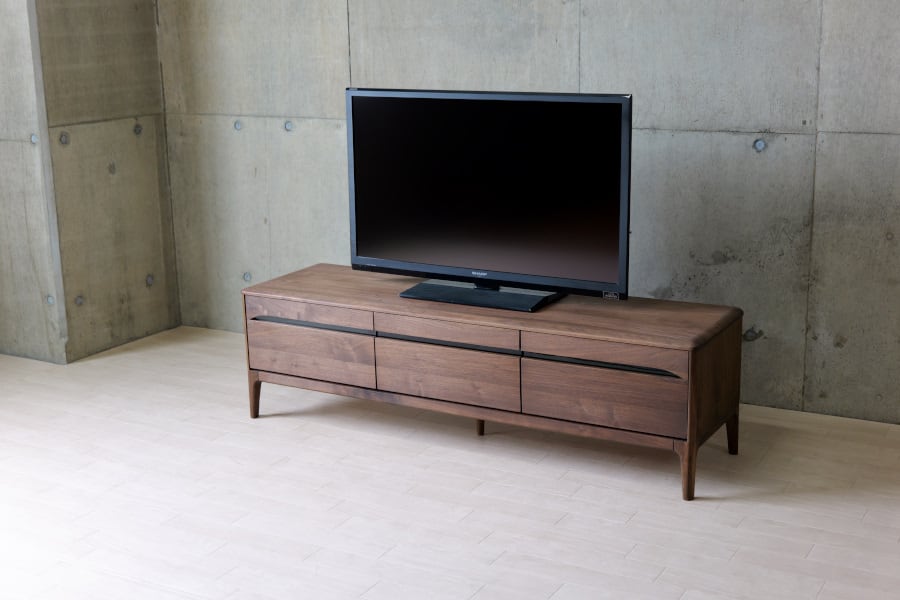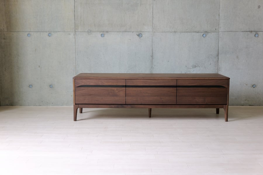 華美な装飾はせず、素材の美しさを活かした本格志向のTVボード。