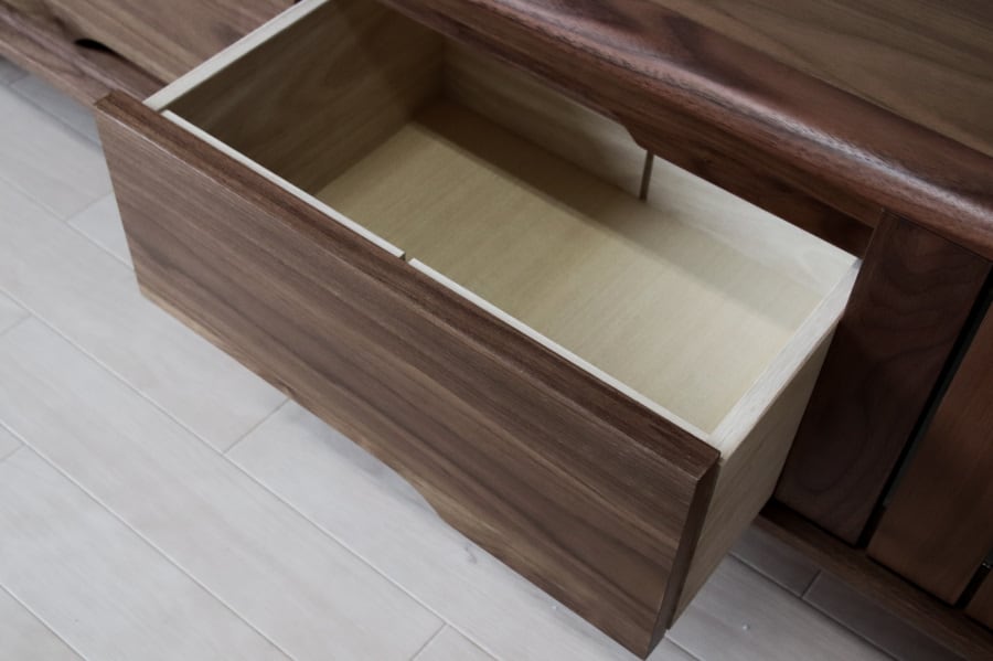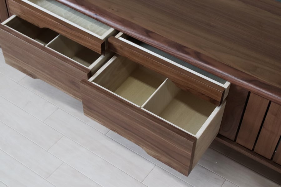 引き戸・天板面材・底板面材・脚:ウォールナット無垢材(ウレタン塗装)