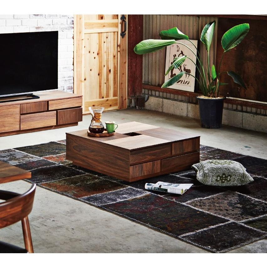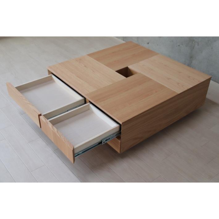 Mono 引出し5杯 国産リビングテーブル センターテーブル 正方形 80 ウォールナット 和モダン おしゃれ ナチュラル 天然木 引き出し 収納