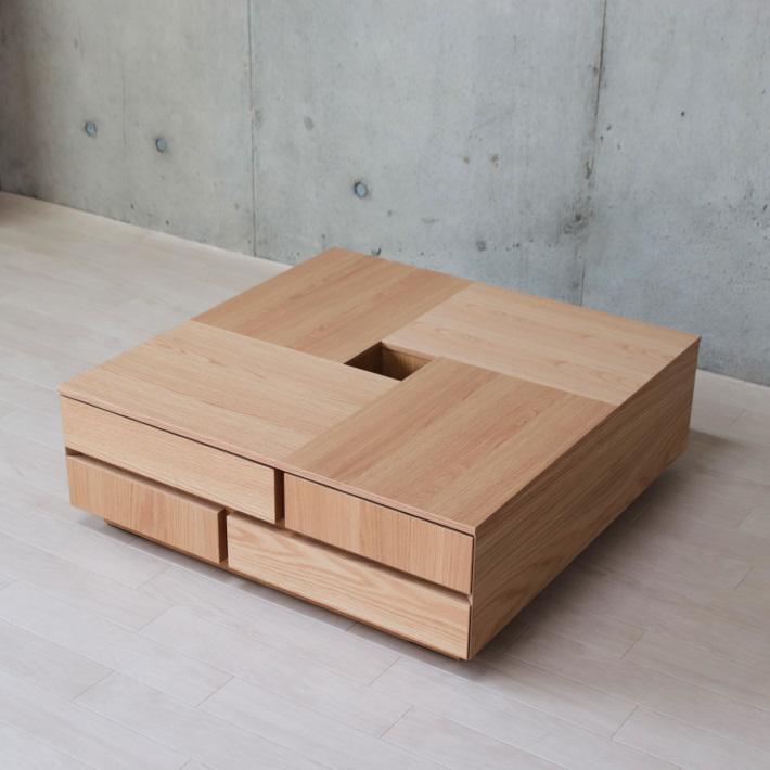 Mono 引出し5杯 リビングテーブル センターテーブル 正方形 80 オーク ナラ 和モダン おしゃれ ナチュラル 天然木 木製 収納 日本製 国産