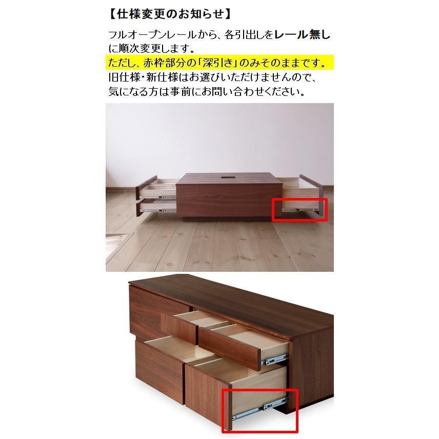 表の収納は、引き出しを四つに分けております。眼鏡や新聞、リモコンなどの整理もしやすい仕様です。