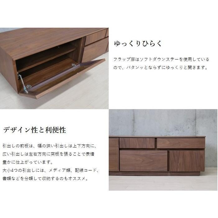 派手な装飾はせず、素材の良さを生かしたデザイン。収納力もあり、シンプルでどんなお部屋にも合わせやすいテレビボードです。