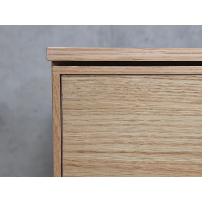 引出しの前板は、狭い引出しは上下方向に、広い引出しは左右方向に突板を張ることで表情豊かになっています。