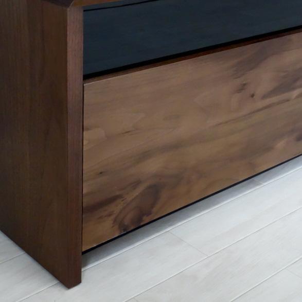 前板は木目が繋がるように配置。天板前部のエッジ加工部分にも無垢材を使用しています。