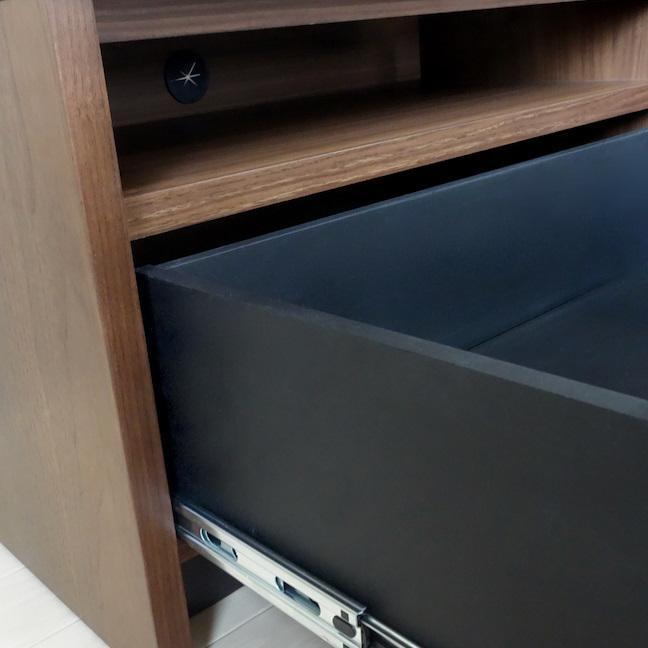 ブラックガラスと無垢材のコントラストがシンプルな見た目ですが、細かい部分にもこだわっています。