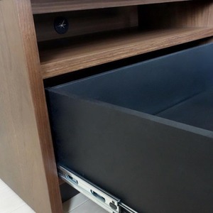 天板のコード用の隙間や、背面化粧、コード孔加工など、使い勝手も考慮しながら、外観を損なう事無く仕上げています。
