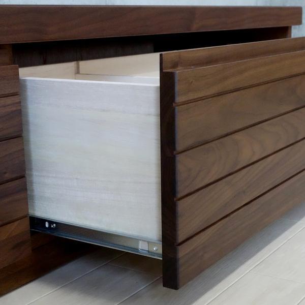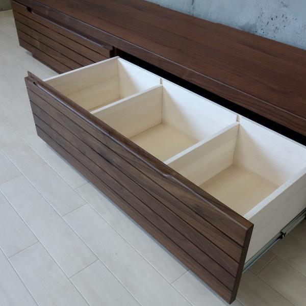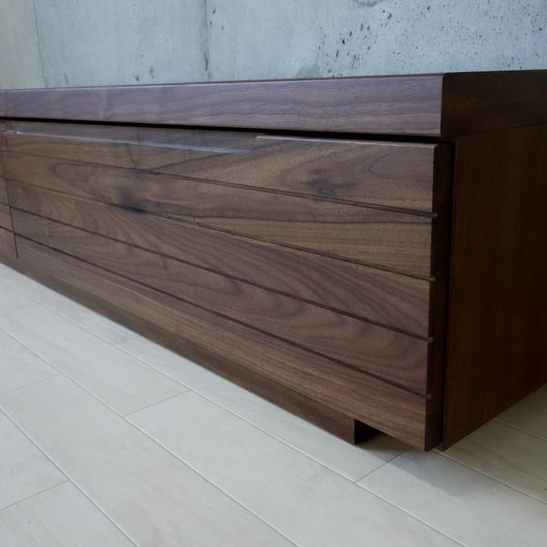 前板に無垢材を使った、飽きの来ないシンプルモダンスタイルのテレビボードです。