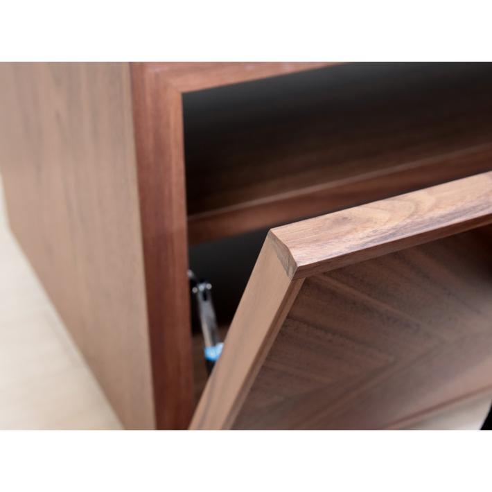 見た目だけでなく、前板には突板ガラスを用いており、扉を開けずともリモコンを使用できる機能もあわせ持っています。