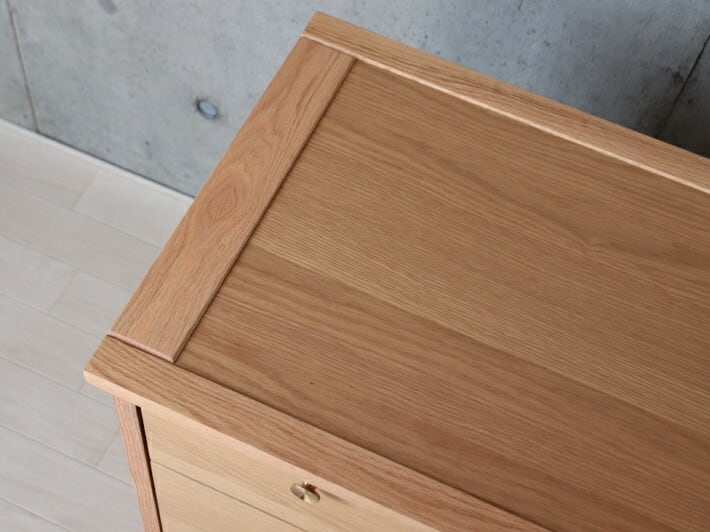 真鍮取手、天板構造を採用したコンソールテーブルです。リビング、玄関周りにおいて可愛らしいサイズ感となるようにしています。
