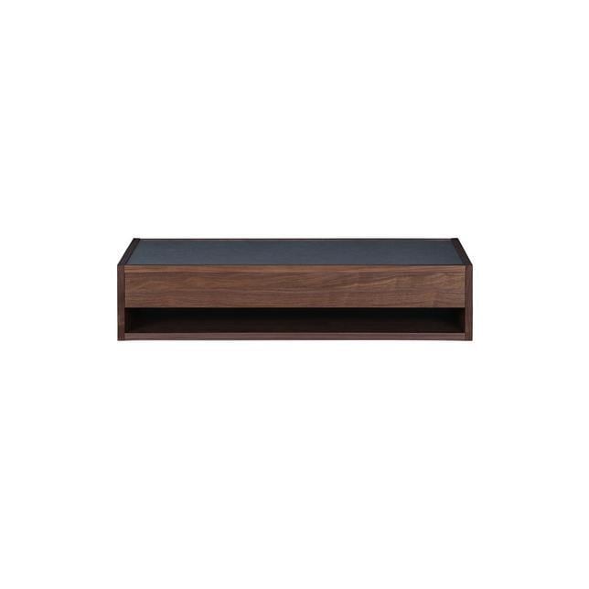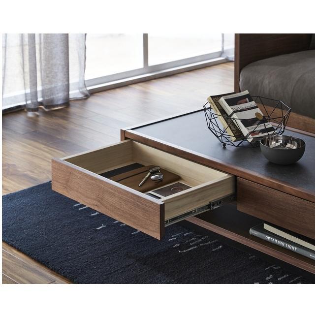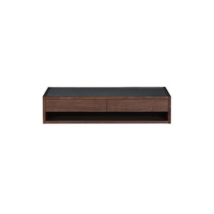 本体は、ウォールナットでシンプルにまとめあげ、二杯の深引き引出しを用意し、収納力も高い仕様です。