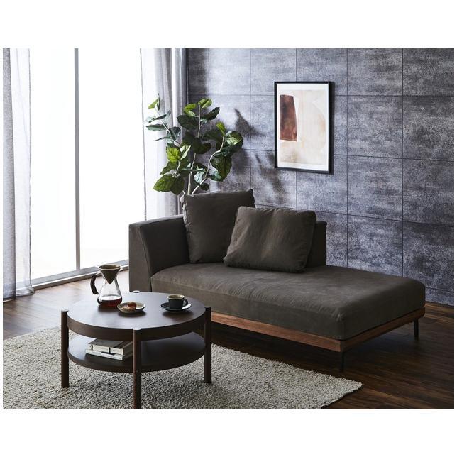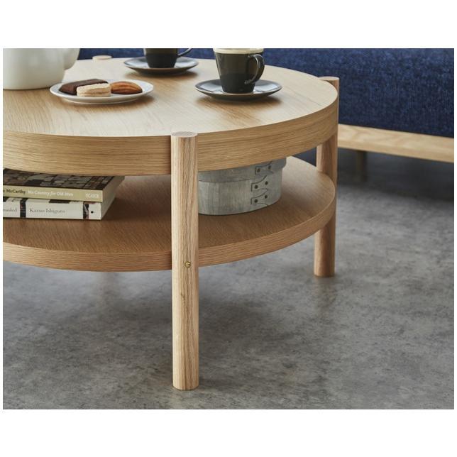 デザインポイントに6センチの天板をもちいたセンターテーブルです。丸脚との設置面は全て丸型に削り込みを行った手の込んだ仕様です。下の棚には真鍮製のマイナスネジをもちいることでアクセントにしています。同シリーズのサイドテーブルとの組み合わせもおすすめです。