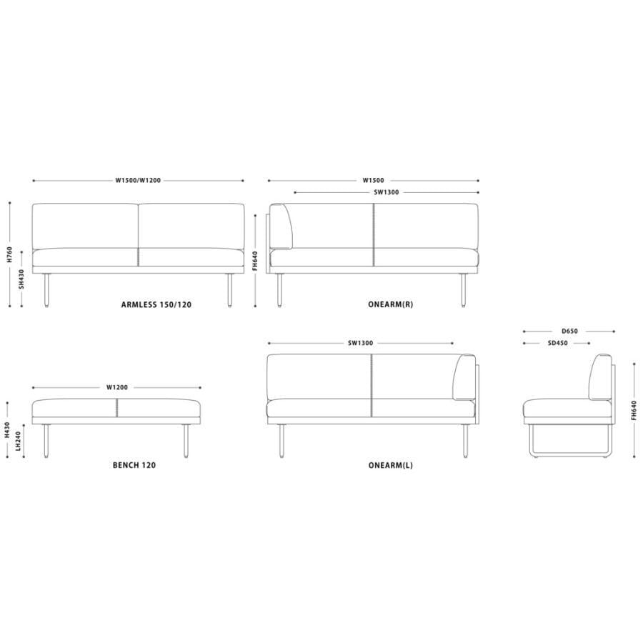 [ ARMLESS 150 ] W1500 D650 H760 SH430 mm