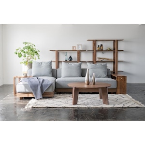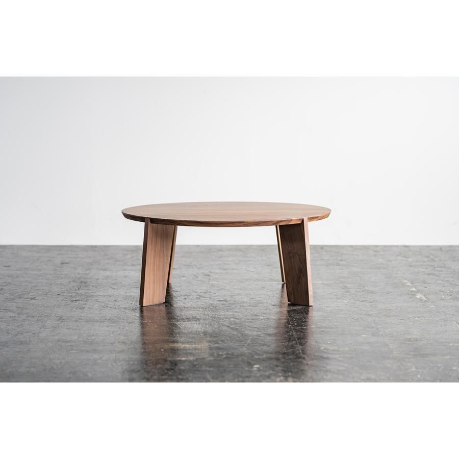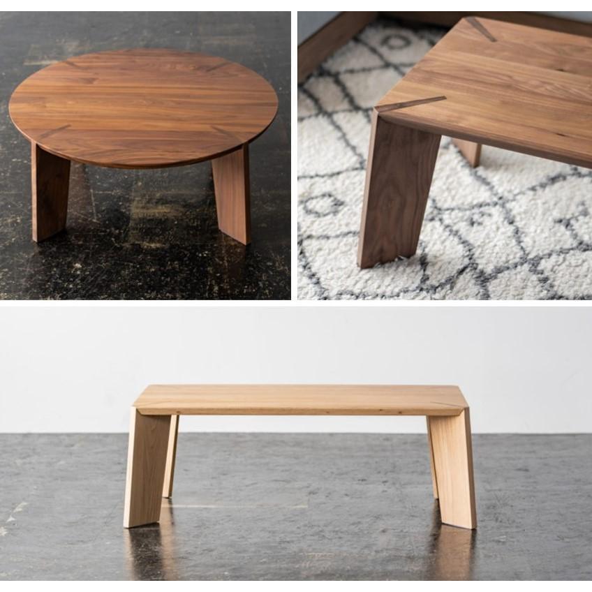 すべて無垢の板で構成されたシンプルな円形タイプのセンターテーブル。