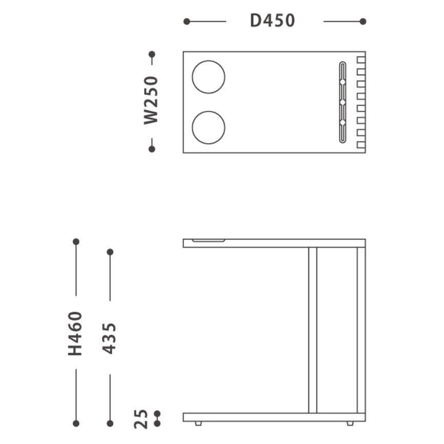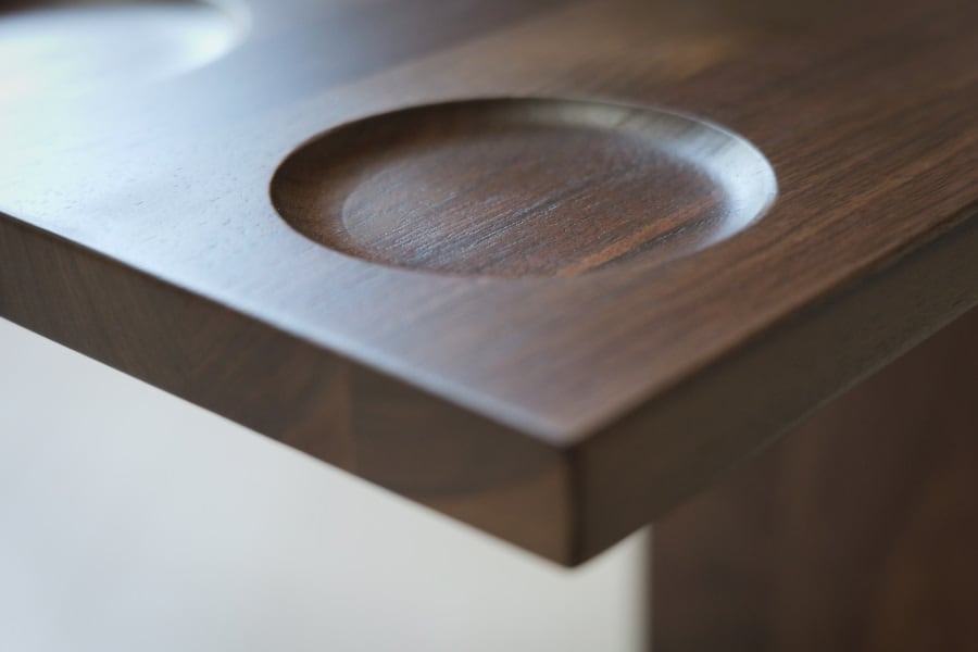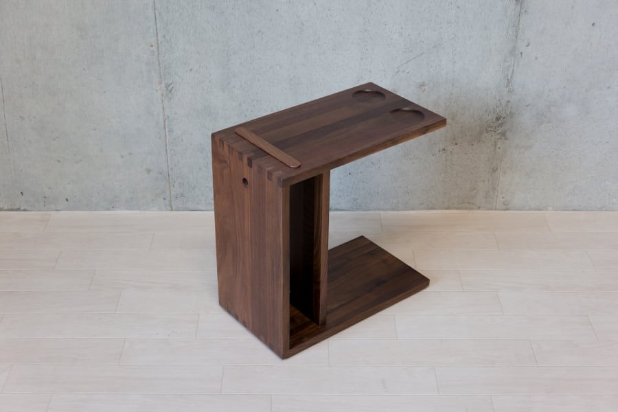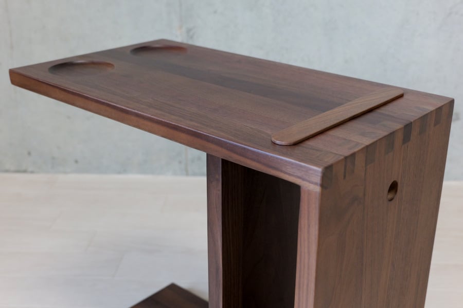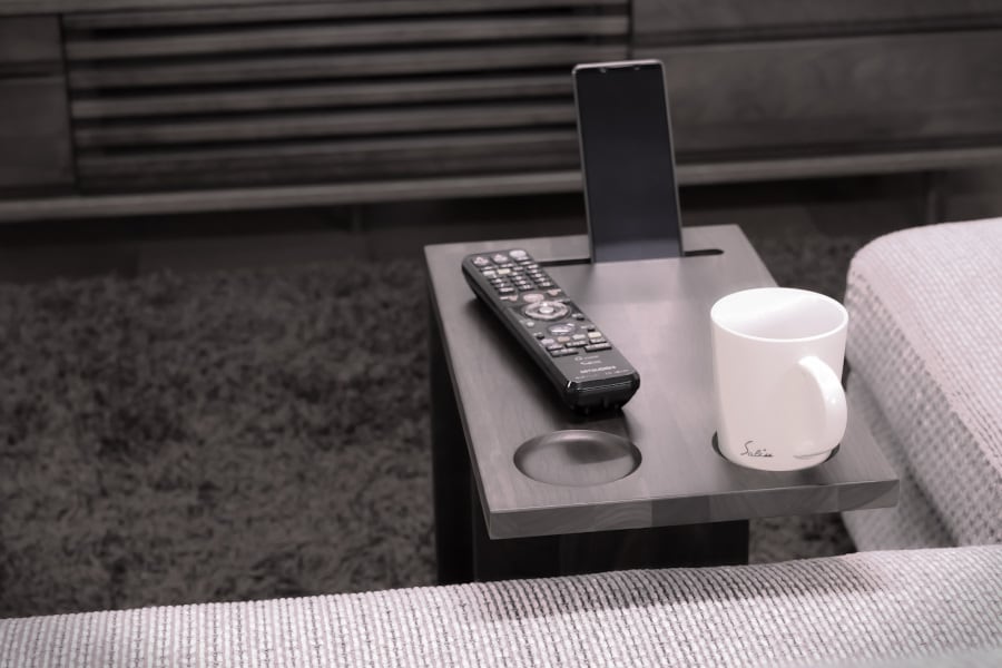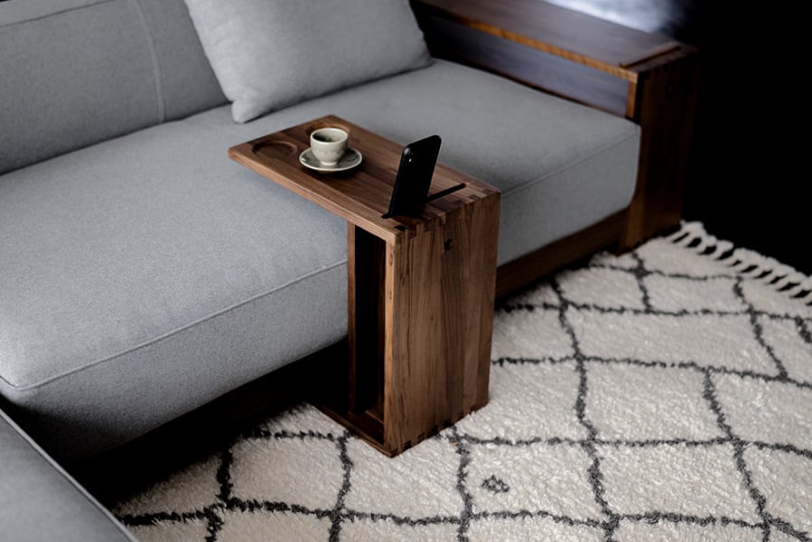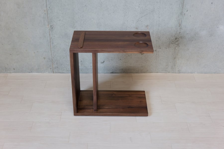 自由な位置に配置できるサイドシェルフとサイドテーブルを組み合わせて、
