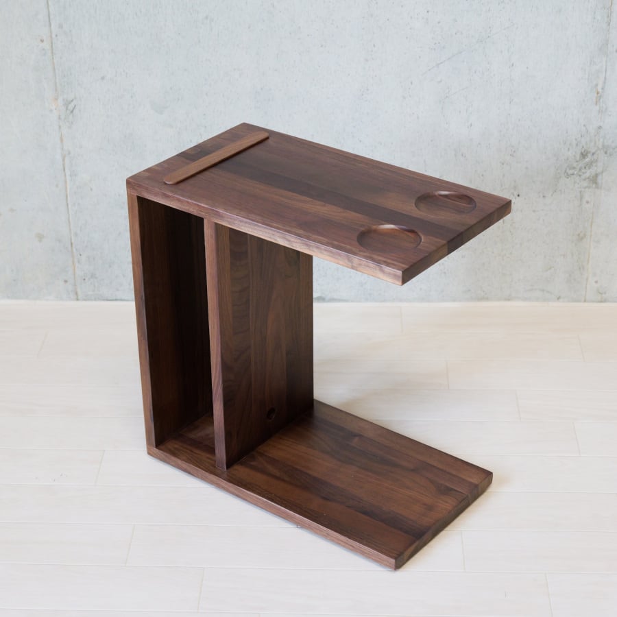 スマホホルダー サイドテーブル おしゃれ 北欧 ウォールナット オーク 木製 ドリンクホルダー 天然木 スマホ置き付き