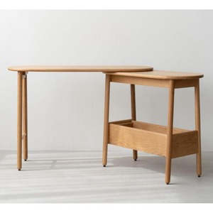 丸く削り出した無垢天板や脚部が優しい印象の、