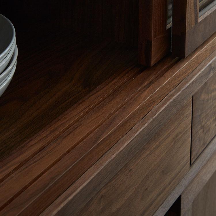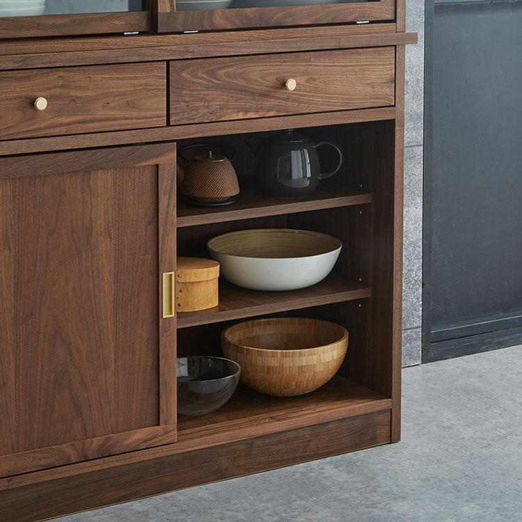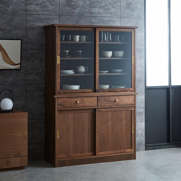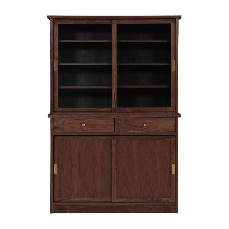 カップボード ウォールナット 天然木 キャビネット 食器棚 幅120 高さ180 おしゃれ 大川家具 日本製 ガラス扉 収納 引出し付き 高級