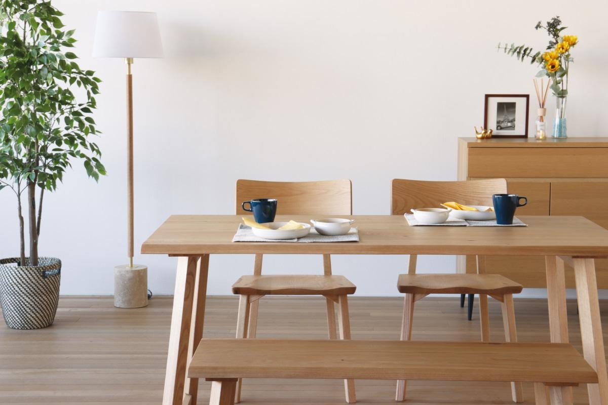 チェアと背付きベンチは節なし(大きな節のない)素材を使用しています。