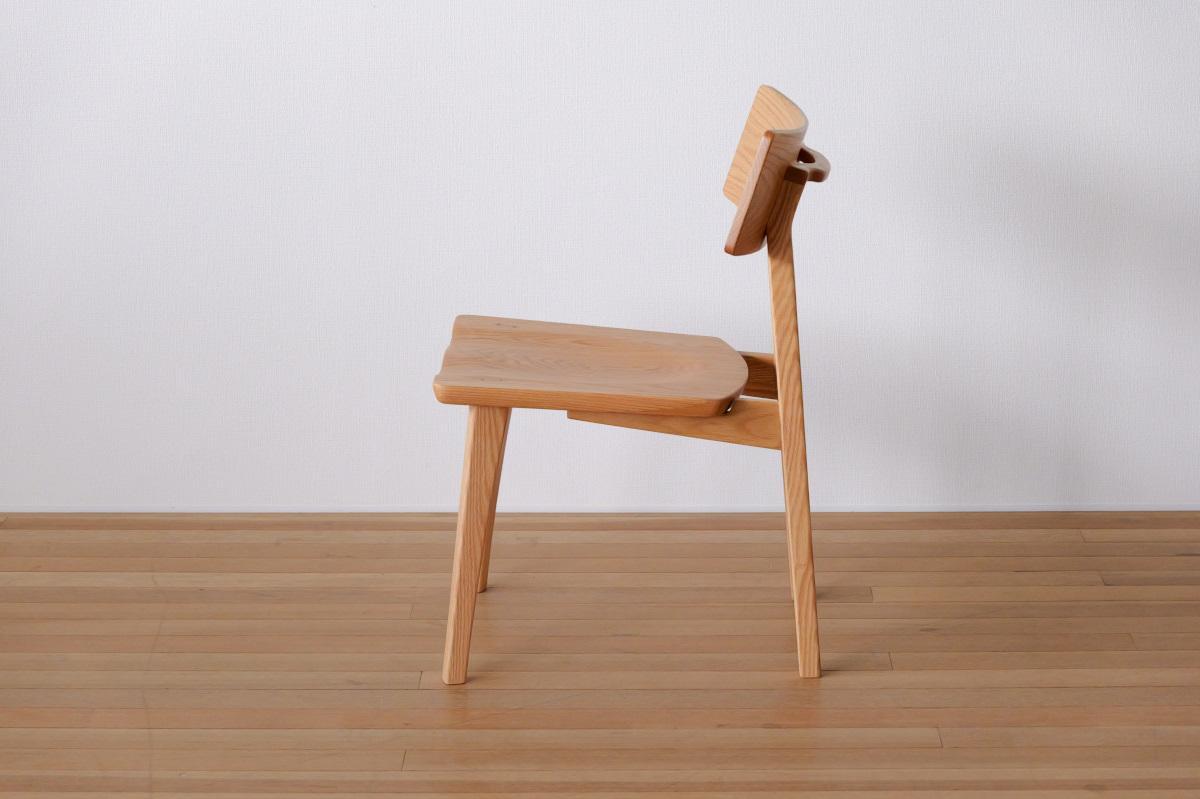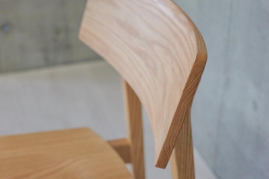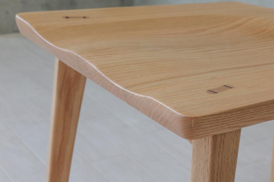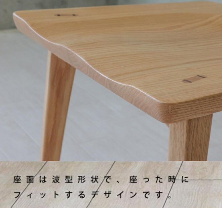 座面は波型形状に加工することで、座った時にフィットする仕様に。脚との接合部は、くさび型の意匠が印象的です。