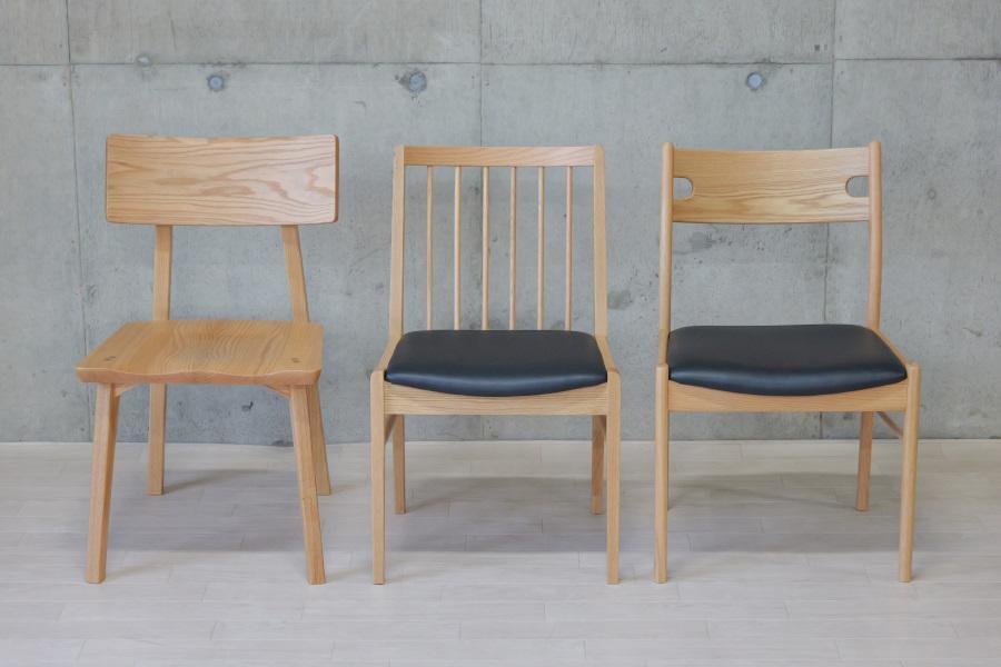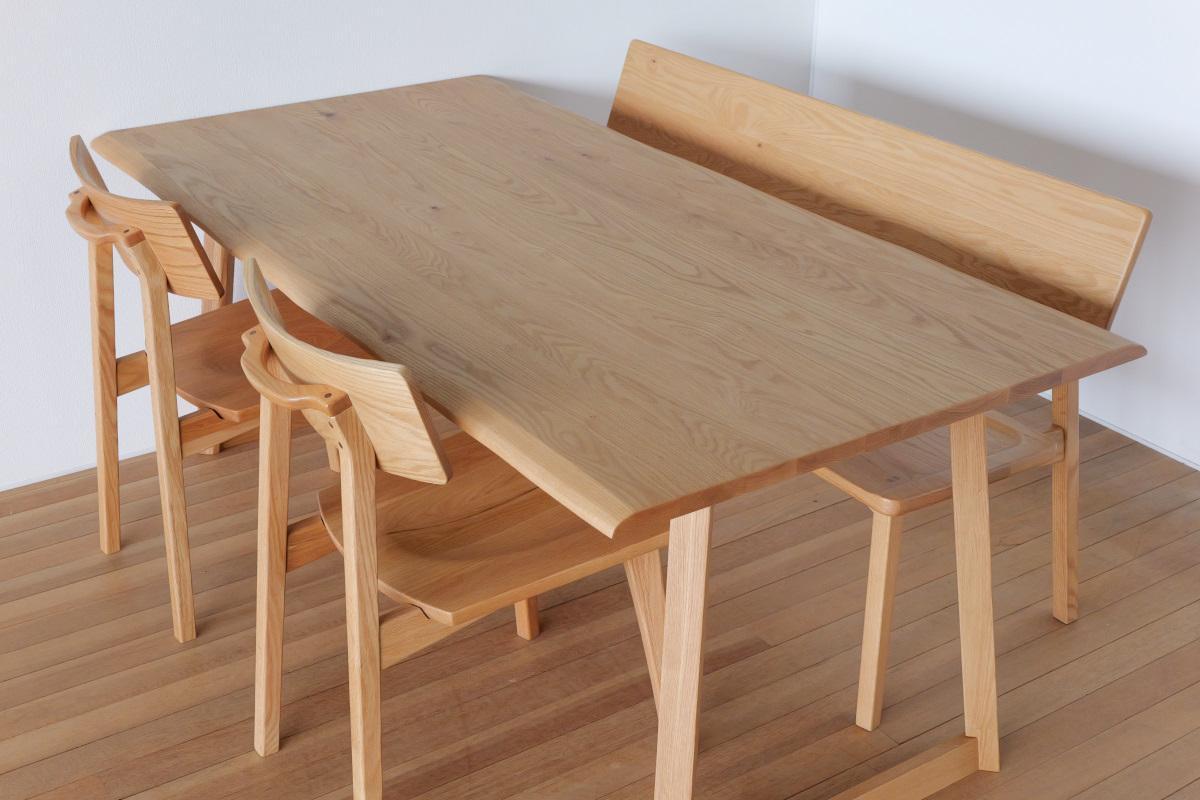 チェアと背付きベンチは節なし(大きな節のない)素材を使用しています。