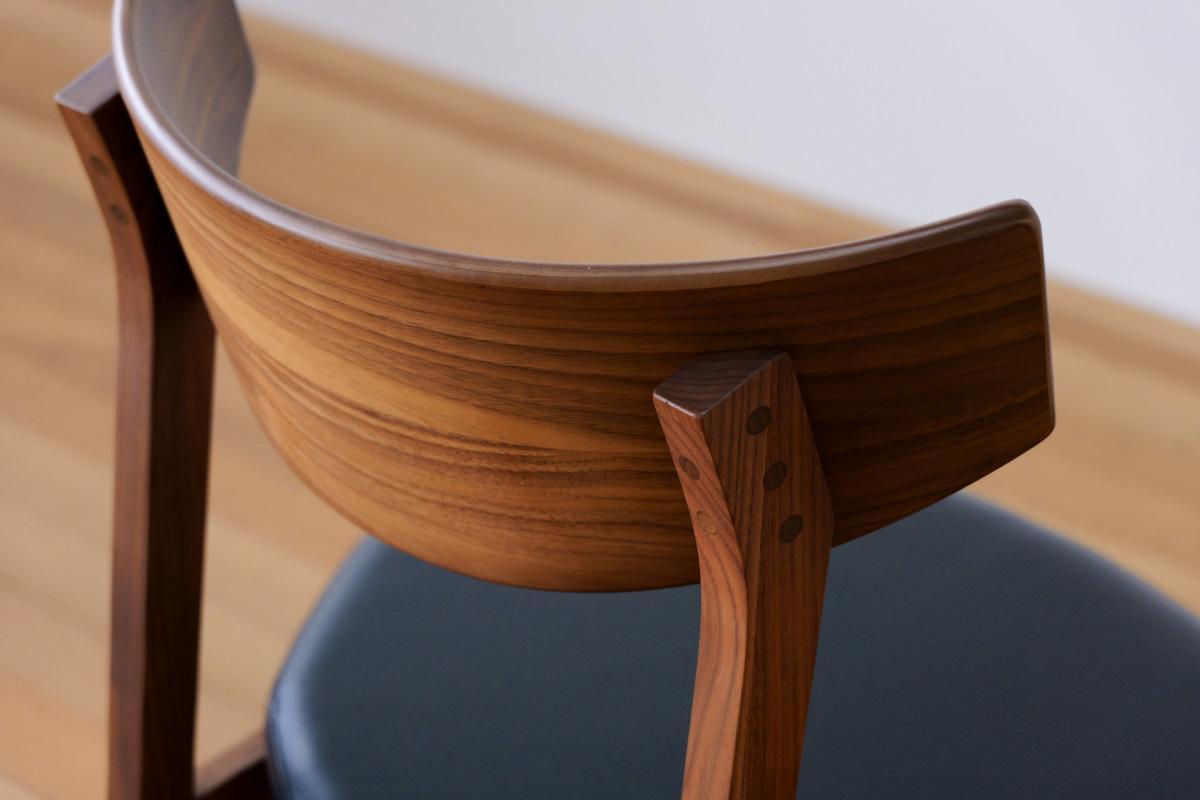 背もたれには成形合板の技術を用い、ゆったりとしたカーブを実現。