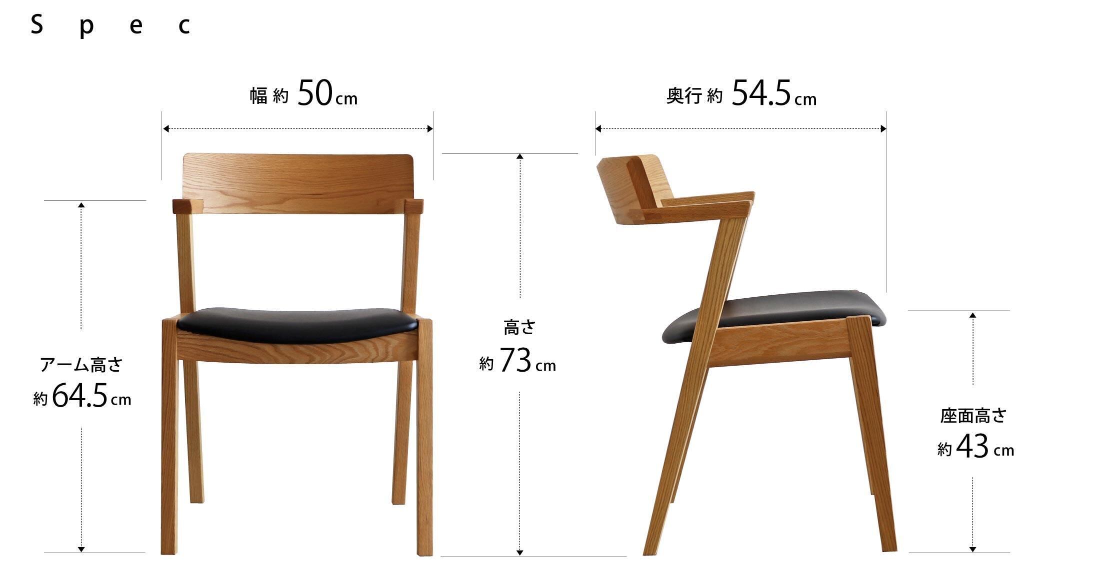 幅50×奥行54.5×高さ73(座面高さ43・アーム高さ64.5)cm