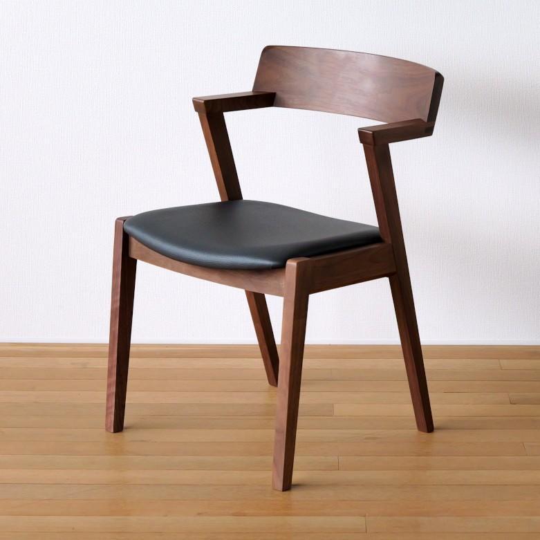 セミアームチェア ウォールナット 木製 おしゃれ シンプル ダイニング用 かわいい コンパクト 無垢材 天然木 北欧 ナチュラル いす 合成皮革