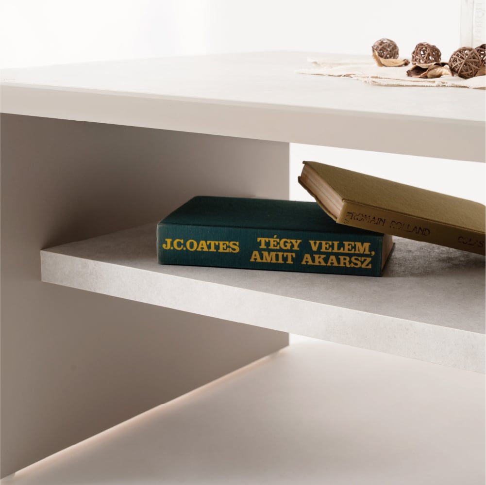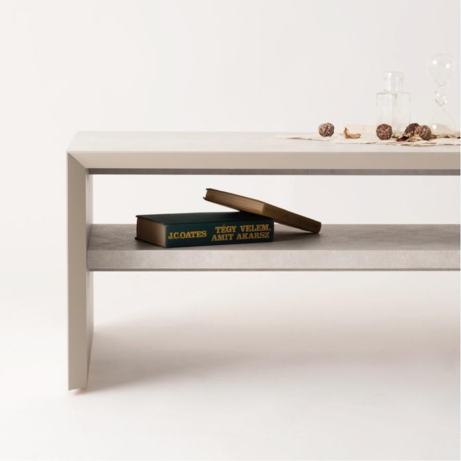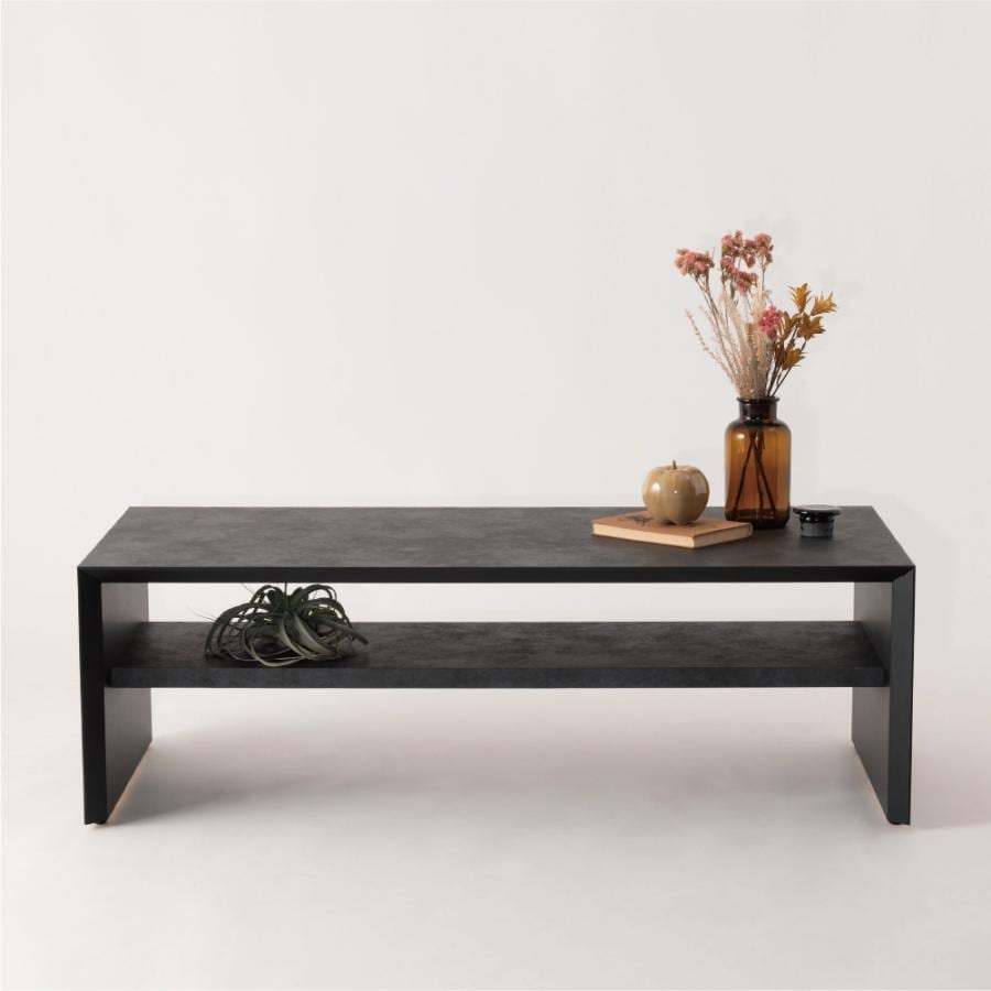 洗練されたイメージで人気のある、モルタル調の石目柄を施した高級感溢れるリビングテーブル。