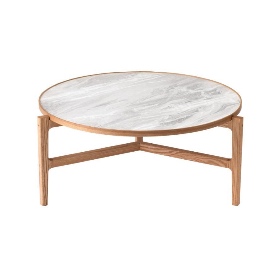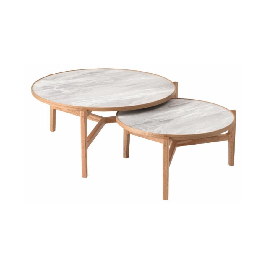 ローテーブル 直径86.5cm 机 丸型 丸い 円形 木製 天然木 オーク 石目調 大理石風 ストーン柄 センターテーブル おしゃれ 北欧 ナチュラル