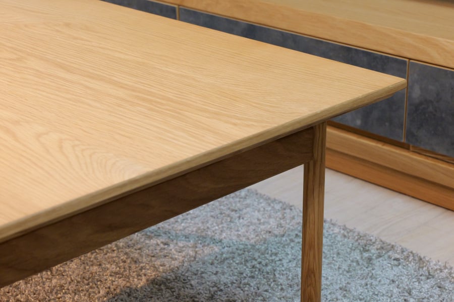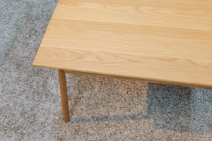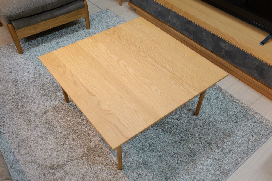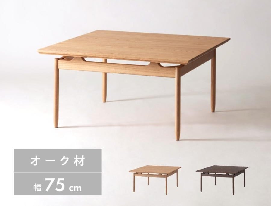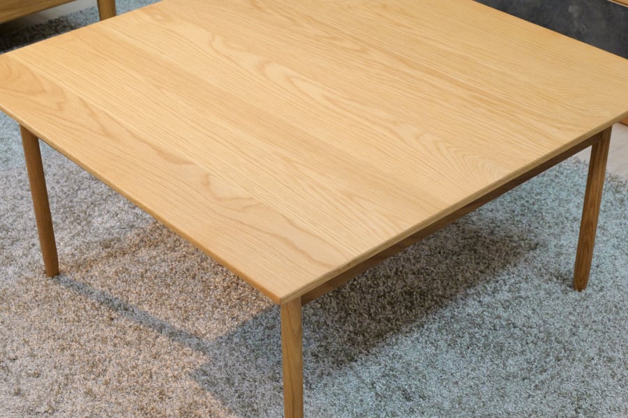 重厚感のあるオーク材を使用し、幅広で使用できる長方形と、カウチソファーにも合わせやすい正方形の2サイズを展開。