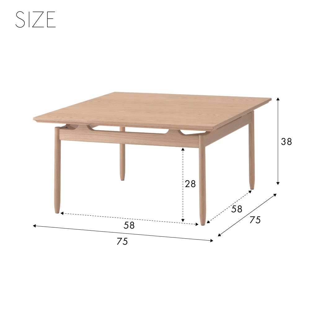 ローテーブル 幅75cm 高さ38cm 机 木製 天然木 オーク ウッド リビング センターテーブル 正方形 丸脚 おしゃれ 北欧 ナチュラル ブラウン