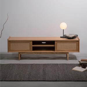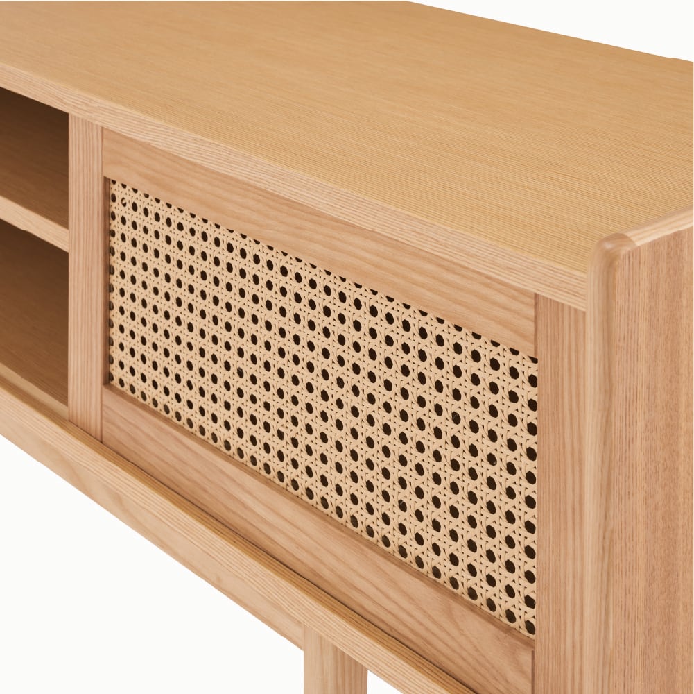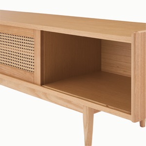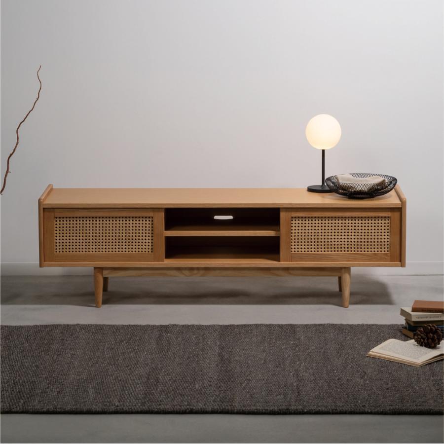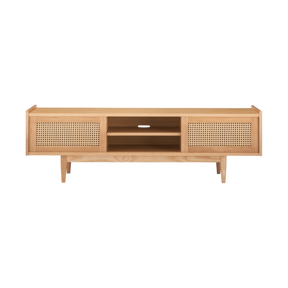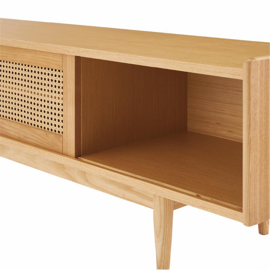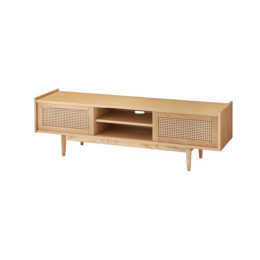 かごめ編みをアクセントに、シンプルでありながら目を引くフォルムに仕上げたTVボード。