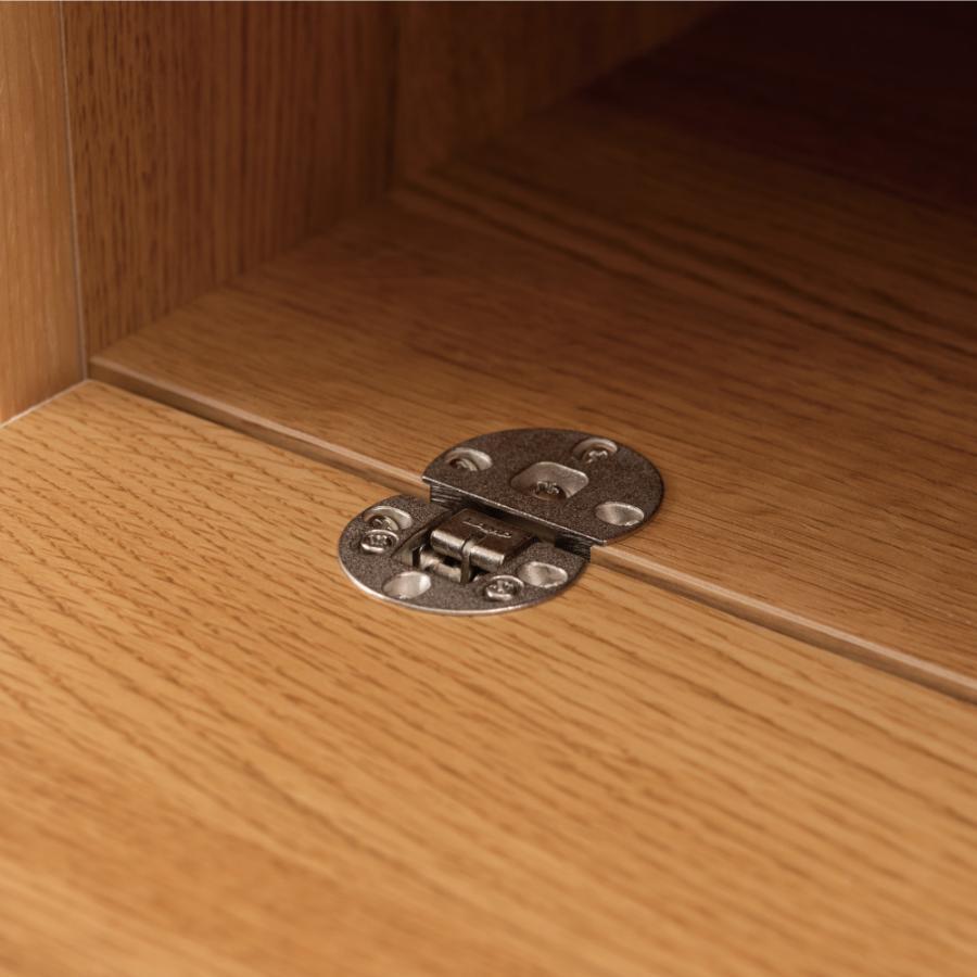フラップ扉の蝶番はフルオープンにしても出っ張りが少ない金具を採用しています。