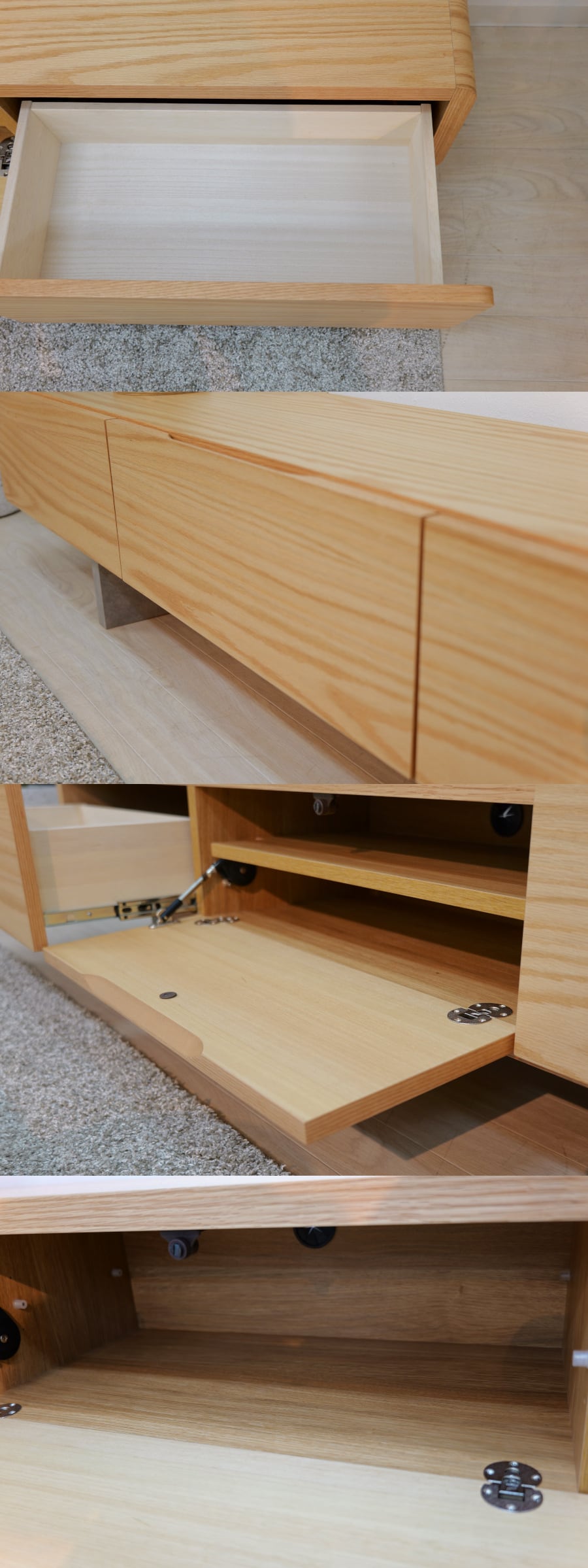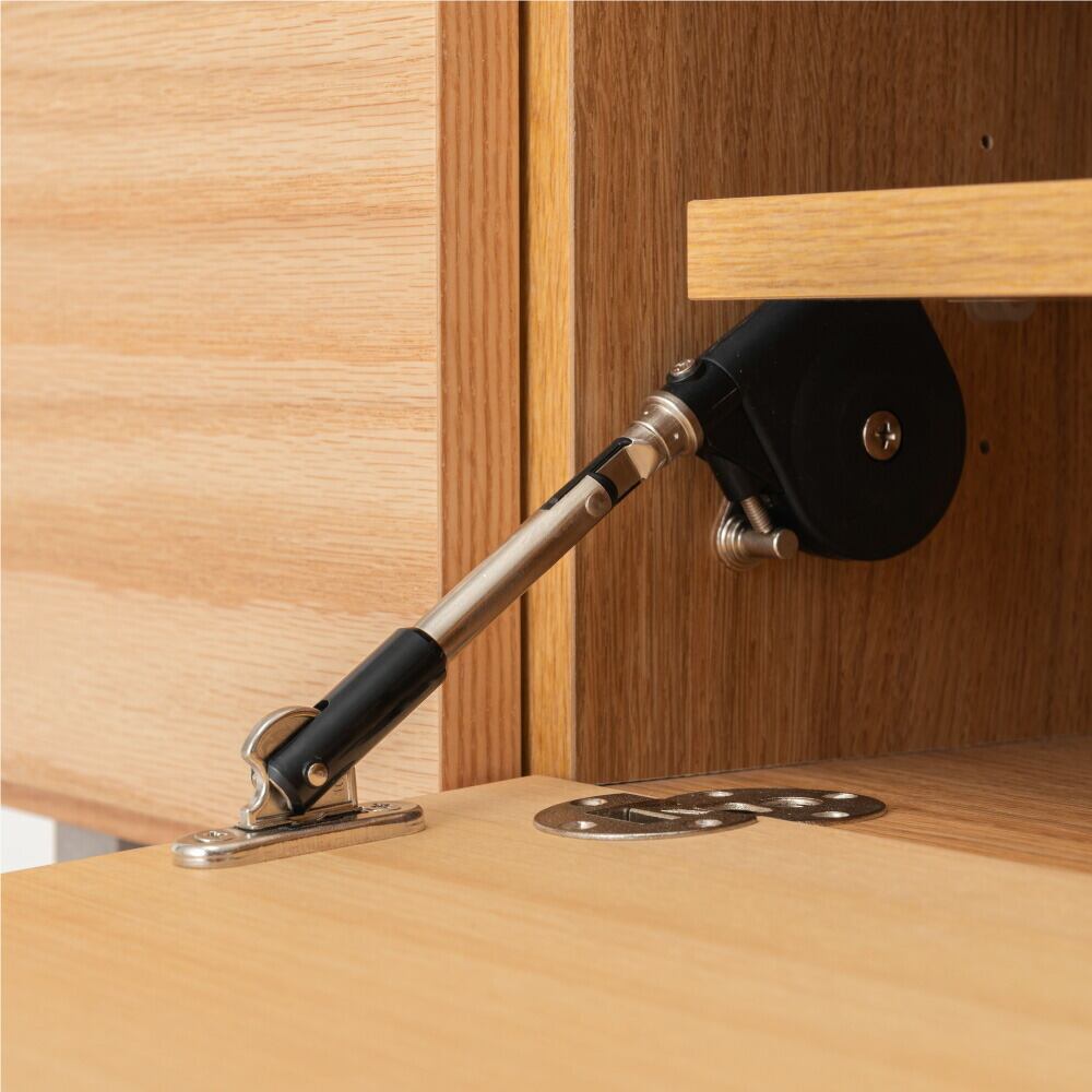 引き出しはスライドレール式、フラップ扉はソフトダウンダンパーを採用しています。