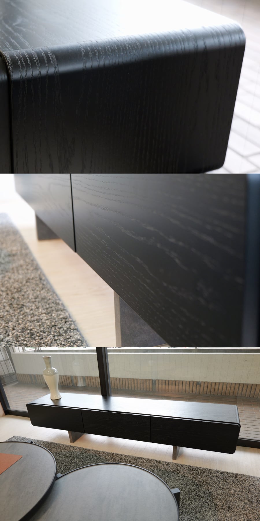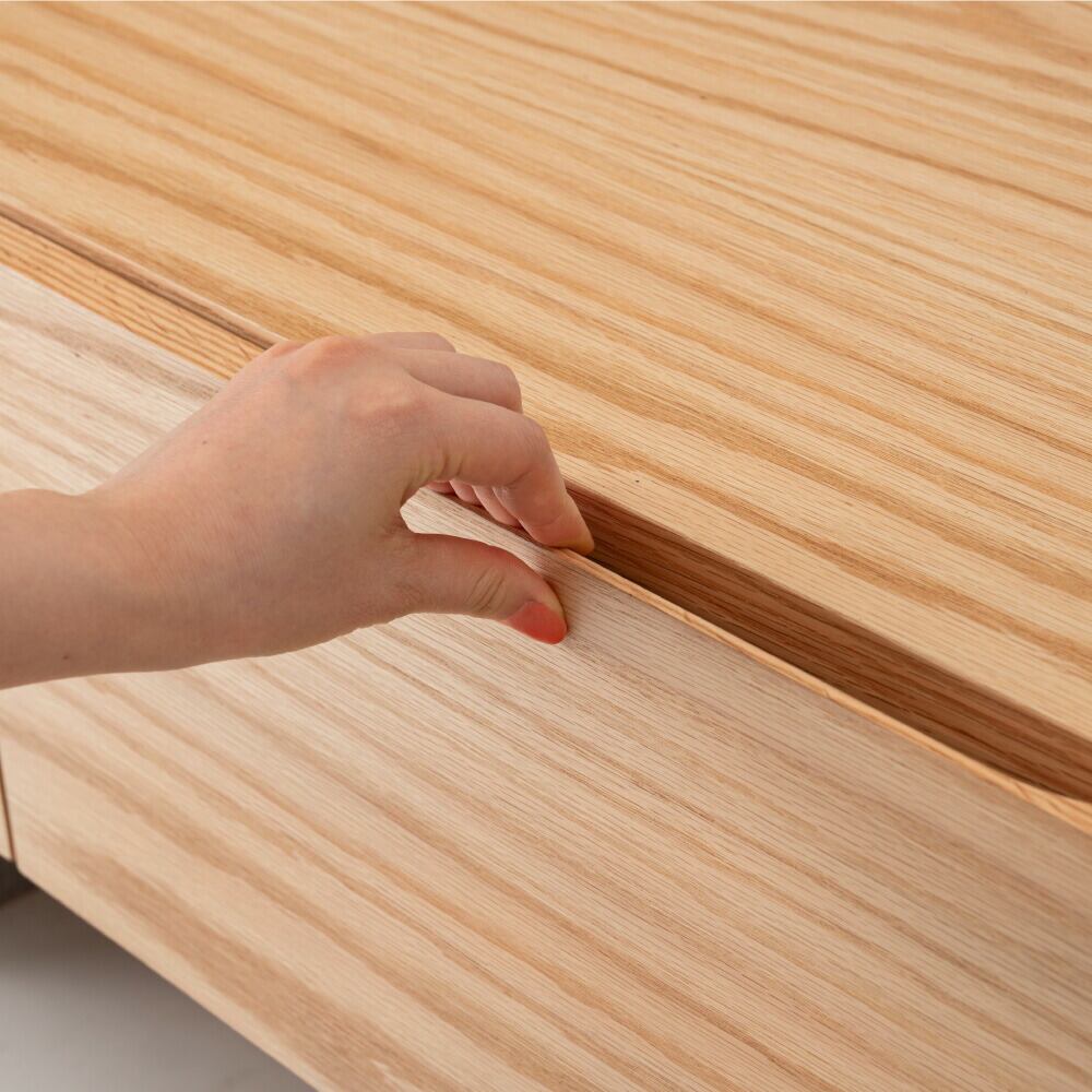 中央のフラップ扉仕様になっておりますが、前板上部に取っ手に代わる隙間を作ることで取っ手が不要となり、前板の美しいデザインを最大限活かしたデザインに。