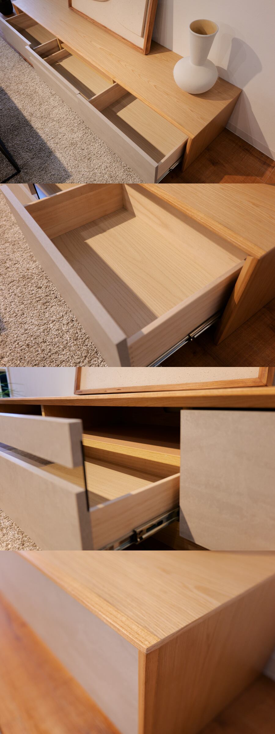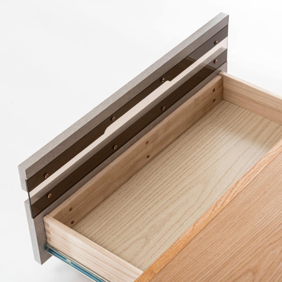 中央の引き出しの前板には赤外線を通すガラスを施し、引き出しを閉めたままでもリモコンの操作が可能です。