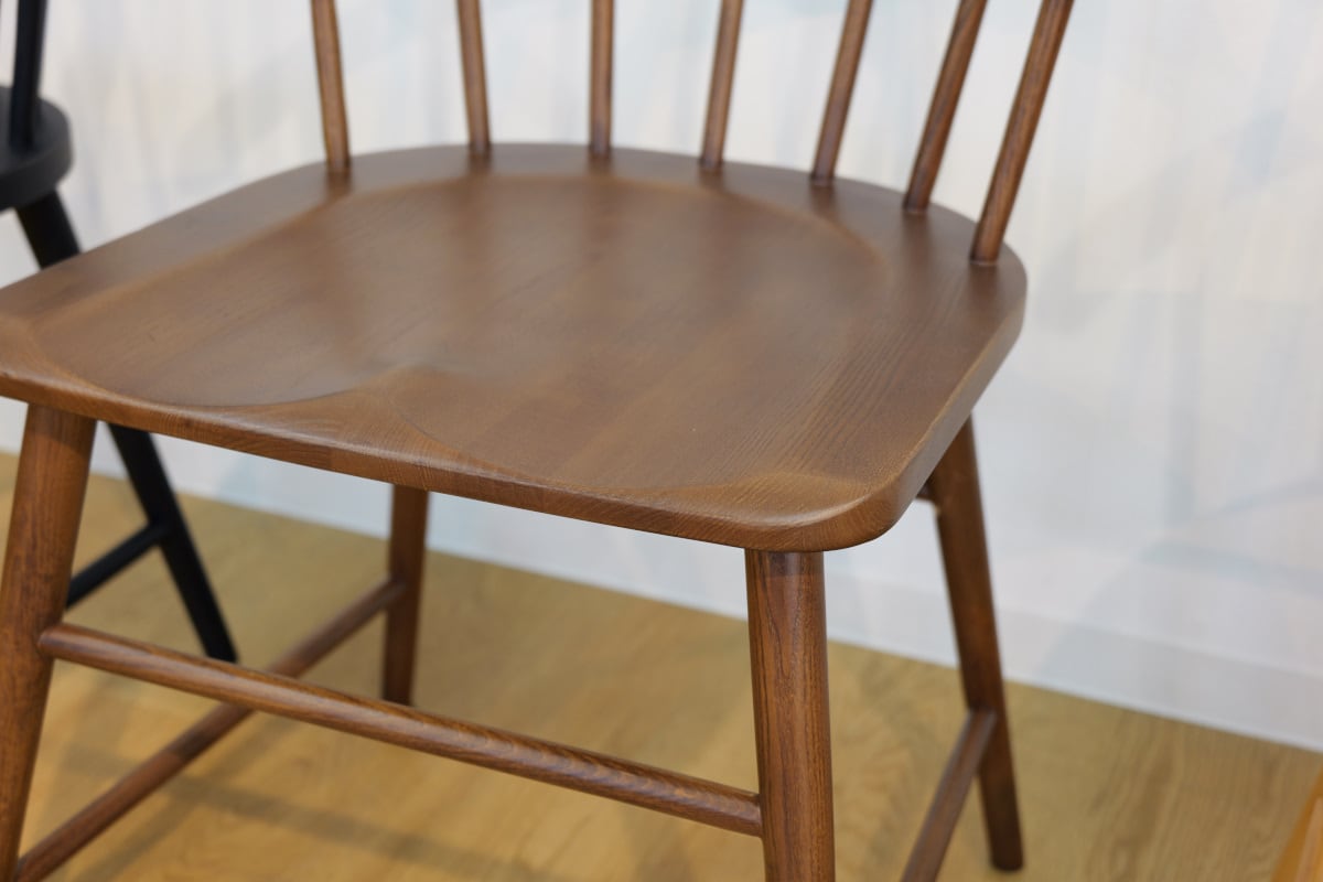 厚めの座板、細長いスポーク、背板の3つを直接接合した形と、ハの字に広がった脚の伝統的なフォルムで、様々なインテリアと相性が良く、お部屋のアクセントとしても活躍してくれます。