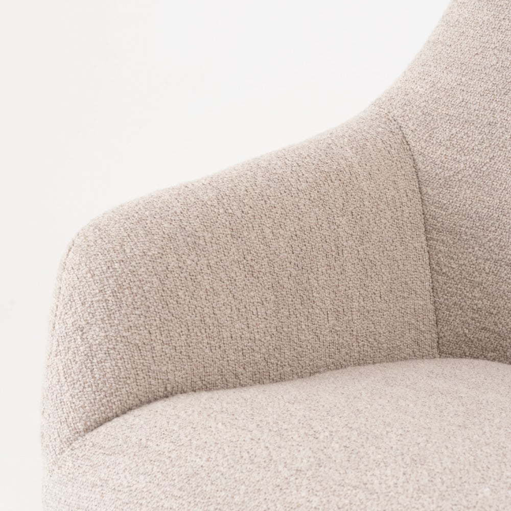 ひじ掛けは丸みを帯びており、控えめながらもしっかり腕を預けることができます。